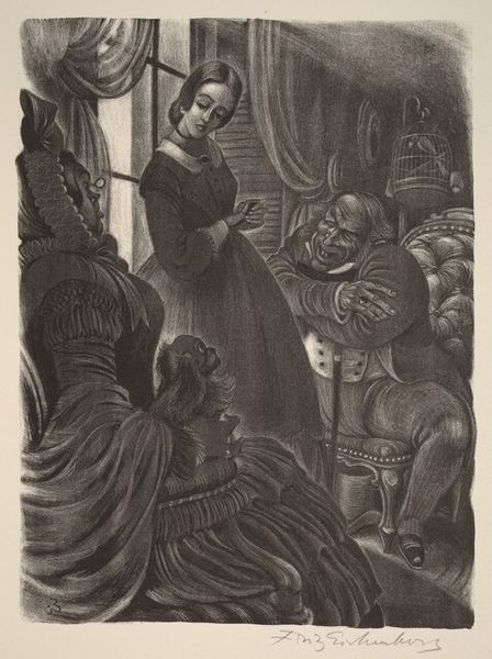 Editor: This is Paul Signac's "Sunday in Paris," created in 1887. It looks like it's a print, maybe a lithograph or etching. There's a woman with her back to us, looking out a window. It feels very domestic, but also a little lonely. What strikes you when you look at it? Curator: The process of creating this image using printmaking techniques immediately brings to mind questions of reproduction and distribution. How does the materiality of this lithograph – the paper, the ink, the marks left by the artist's hand in the creation of the plate – speak to a broader social context of artistic production and consumption? Editor: So, not so much what she’s looking AT, but the fact that this scene could be replicated and sent around. I see. Curator: Precisely. Consider the rise of print culture in the late 19th century and its impact on the democratization of art. This work prompts us to think about access, labor, and the market forces shaping artistic practice. Also note Signac's pointillist influence which shows itself with the small grouped strokes he uses in this print. The materials themselves are part of the statement; they aren't neutral. What social commentary might Signac be offering? Editor: Maybe that even moments of quiet contemplation could be mass produced and therefore commodified? Curator: It's a fascinating tension, isn't it? Signac’s exploration using this technique gives a whole other meaning to the subject matter. I wonder how other art from that period tried to handle such issues? Editor: I never thought about prints as more than just reproductions before! Thanks, this gives me a lot to think about!