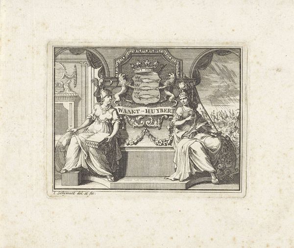 Bernard Picart created this print, "Man achter een lessenaar roept een geestelijke tot de orde," around 1720. It’s an engraving that depicts a tense encounter between two men, likely members of the clergy, set against the backdrop of what appears to be a library or study. During the 18th century, Europe was experiencing significant shifts in religious and intellectual life, and this image seems to capture some of that tension. We see one man, presumably in a position of authority, gesturing assertively toward the other, who appears to be retreating. The setting, with its books and scholarly environment, implies a world of learning and debate, but the interaction between the figures suggests conflict and perhaps a challenge to established norms. Is this a moment of disciplinary action, a clash of ideologies, or a representation of the changing dynamics within religious institutions of the time? Picart’s work invites us to consider how power, knowledge, and faith intersect, and how these dynamics play out in personal and institutional contexts.