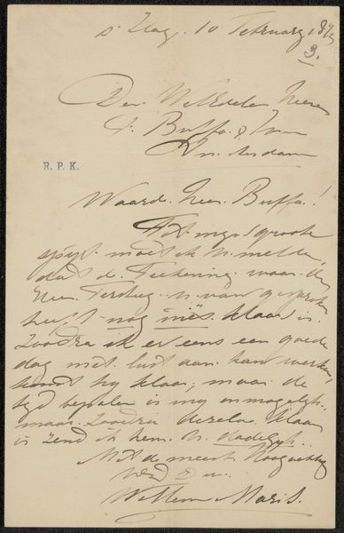 This is a letter to Philip Zilcken created in 1890 in The Hague by Paul du Rieu. The texture of the paper, aged and worn, immediately suggests the passage of time. The composition is dominated by the flow of handwriting, which, in its elegant loops and curves, creates a dynamic interplay between the written word and the visual form. Du Rieu’s handwriting functions almost as an abstract expression, where the legibility of the words is secondary to the aesthetic rhythm they create across the page. The script challenges our conventional understanding of written communication, pushing it towards a form of artistic expression. The letter prompts us to reconsider the act of writing and reading, and the relationship between text and image, information and aesthetics. The formal qualities of this letter—the texture, the composition, and the calligraphic lines—invite us to consider how even everyday objects can operate within a field of artistic and cultural signification.