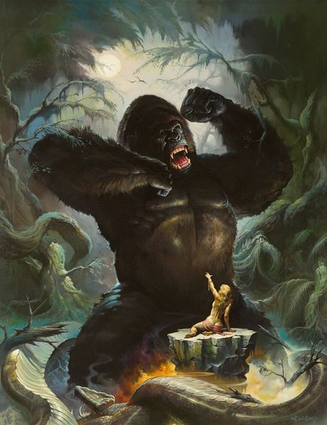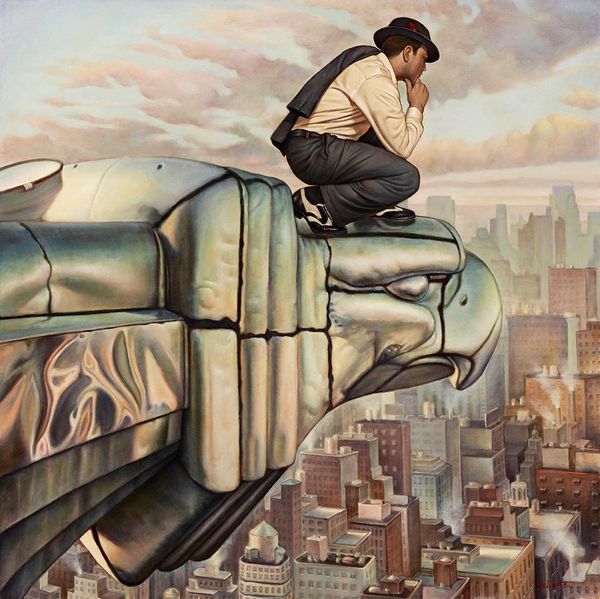 Thomas Blackshear created this striking painting, “The Eighth Wonder of the World,” referencing the classic King Kong film, without specifying the year it was made. Blackshear here engages with a complicated legacy of cultural representation. This image powerfully evokes early 20th-century anxieties about race, masculinity, and the perceived threat to white womanhood. The towering skyscraper—likely the Empire State Building—locates us in 1930s New York, a city symbolizing both modernity and the harsh realities of economic inequality during the Great Depression. The giant ape, often read as a symbol of untamed nature or even the black male body, looms over the city and a terrified white woman. To truly understand this work, we need to explore the cultural context in which it was made. What did King Kong represent to audiences then, and how do those meanings shift when reinterpreted by a contemporary artist? Researching the history of racial stereotypes in film, critical race theory, and the social anxieties surrounding gender and race in early 20th-century America are essential to interpreting this striking image.