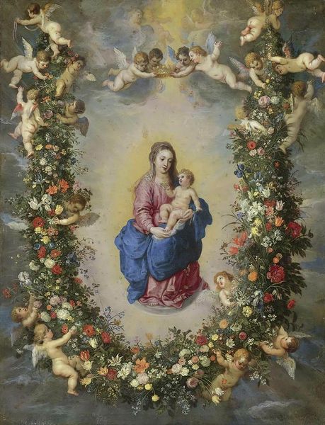 Bartolomé Estebán Murillo created *The Immaculate Conception* as an oil on canvas, which can be found at the Hermitage Museum. The composition focuses on the Virgin Mary, surrounded by cherubic angels and bathed in a divine light. The artist arranges the figures in a dynamic, upward-moving spiral that draws the eye toward Mary's face. Note how the soft, diffused lighting and the gentle curves of Mary's form contribute to the overall sense of ethereal beauty. Murillo's style here reflects the broader Baroque interest in eliciting emotional responses through visual drama and heightened realism. By using light and colour, Murillo evokes a sense of transcendence, inviting viewers into a spiritual contemplation that goes beyond literal representation. This piece doesn’t just depict a religious scene; it's a crafted visual experience intended to provoke awe and reflection.