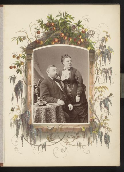 Julius Ortgies Jr. made this portrait of a man with two children using photographic methods that were innovative at the time. These kinds of photographic portraits became popular around the world as photography became more accessible. In this image, which was probably made somewhere in Europe, a man sits with a baby on his lap and a young girl at his side, the whole composition framed by an ornate border. The popularity of these kinds of studio portraits reflects the increasing importance of the nuclear family in Western cultures. During the Victorian era, photography studios emerged as key institutions, democratizing portraiture that had previously only been available to the upper classes through painting. The settings and props would have been chosen to project an image of respectability and domesticity. To understand this image better, one might research the history of photography studios and the emergence of childhood as a distinct social category. By exploring the visual codes and cultural references, we can better appreciate the social and institutional context that shaped this family portrait.