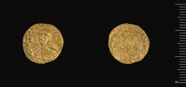 Editor: This is a gold coin of Leo III. The details are worn from time, but you can still make out the regal figures. How do you interpret the symbolism on such a small, powerful object? Curator: I see a tangible link to a distant past, a whisper of imperial authority. Gold itself speaks of power, doesn't it? And those stylized portraits, gazing out across centuries…it's like holding history in your hand. Does it make you think about who touched it last? Editor: It does! What does it tell us about Leo III’s reign? Curator: Well, consider the Byzantine context. This coin was not only currency but also propaganda, asserting legitimacy. See the cross? Religion was interwoven with power. Editor: Fascinating! I’ll never look at money the same way again. Curator: Exactly! Isn't it wonderful how art transforms the mundane?