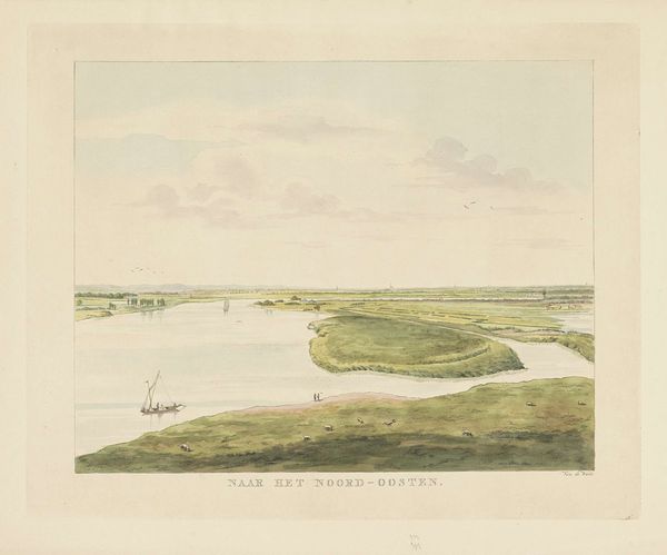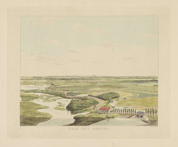 Derk Anthony van de Wart rendered this watercolor and pen artwork, “Gezicht op het landschap ten zuidoosten van Nijmegen,” offering us a window into the landscape of the Netherlands. Van de Wart, born in the latter half of the 18th century, lived in a time of significant political and social upheaval with rising discussions around national identity. At first glance, the landscape seems like a peaceful vista with windmills dotting the horizon. However, the fortifications in the foreground also speak to a nation in a defensive posture. The work offers a nuanced perspective, inviting us to consider the relationship between the land, the people who inhabit it, and the structures they build to protect it. Van de Wart’s artwork captures a moment in time, inviting reflection on the enduring themes of place, identity, and security. It offers us a glimpse into a world on the cusp of change, where the familiar landscape is both a source of comfort and a site of potential conflict.
