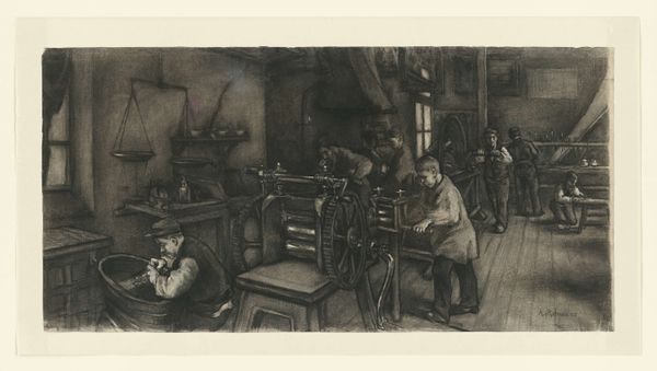 Anthon Gerhard Alexander van Rappard rendered this scene of laborers in a cotton factory in a drawing. The composition immediately directs our gaze to the workers, each an anonymous figure in the industrial landscape, bent over their work. Notice the stooped postures and repetitive gestures, echoed across time. We see them mirrored in depictions of laborers from ancient Egypt to the medieval ages and onwards. Each figure is consumed by the weight of labor. The act of repetitive physical labor transcends mere work. It becomes a ritual, a cycle of human activity embedded in our collective memory. It is a symbol that shifts and evolves. The endless cycle of labor reflects a deeper, perhaps subconscious, understanding of human existence. The emotional and psychological impact of such labor practices engage us, as we contemplate our place within the flow of history.