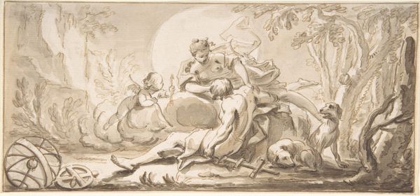 This drawing of Saint Agnes was made by an anonymous artist using pen and brown ink, brush in brown and gray ink, and white gouache. Agnes was a virgin martyr, a young woman who chose death over marriage, dedicating herself instead to the Christian faith. The imagery here—the lamb which is Agnes's attribute as well as a symbol of Christ, along with the palm of martyrdom that she holds— speaks to a history of female strength rooted in religious devotion. It represents a culturally specific narrative of female power, one which is still in circulation today. How might we reconcile the patriarchal structures of the church with the image of a young woman who defied societal expectations, asserting agency over her own body and destiny? Although the drawing presents a specific religious narrative, its focus on female strength and devotion invites a broader reflection on identity, choice, and the diverse ways in which individuals navigate their paths.