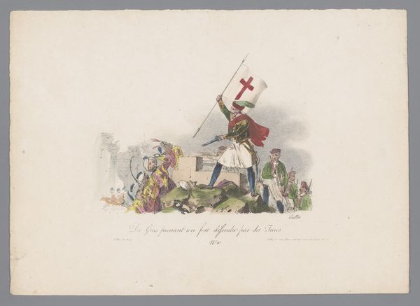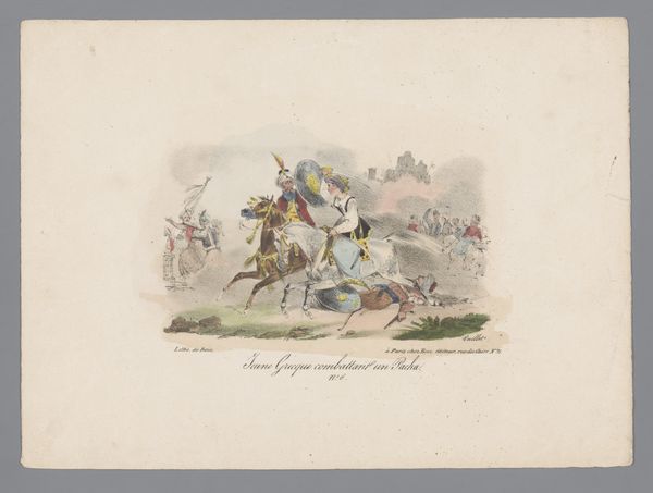 Karl Loeillot-Hartwig created this print, "Triumphal entry of the liberators of Greece," at a time when Europe was in the throes of Romanticism and deeply invested in the idea of national liberation. The print depicts soldiers on horseback, celebrated by a crowd, against a backdrop of classical architecture. It reflects the broader European fascination with ancient Greece, a touchstone for ideas of democracy and freedom. But the Greek War of Independence, which began in 1821, was not simply a narrative of liberation. It was entangled with European powers' strategic interests and interventions. Looking at the enthusiastic crowd, it's worth asking: Whose voices are amplified in this narrative of liberation, and whose are silenced? How do images like this shape our understanding of historical events and national identities? This work invites us to consider the complex layers of history, power, and representation that shape our understanding of freedom and heroism.