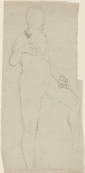 Editor: This drawing, “Studies of Nudes” by Henry Fuseli, appears to be a pencil sketch on paper. I’m immediately struck by the roughness of the paper, and the sketch-like quality. How can we interpret this piece considering its apparent lack of refinement? Curator: Well, let's think about the means of production here. Fuseli's choice of materials – pencil and paper – suggests a preliminary stage, a study rather than a finished artwork. The torn edge reinforces this sense of process, of something incomplete or even discarded. Doesn’t this challenge the conventional view of art as a polished, final product? Editor: Absolutely! It does make me question what Fuseli considered valuable or worth presenting, since it could also be viewed as purely utilitarian, perhaps an exploratory practice. Curator: Exactly. Consider the social context. In Fuseli's time, academic art placed high value on finished, history paintings. However, artists often relied on drawings like these to develop their ideas. What labor do we not see that might've been present in completing something more, or that went into preparing his materials? What statement might the artist be making with this presentation? Editor: So, is this drawing then a subtle commentary on the art market itself, by focusing our attention to materials rather than its artistic polish? A protest, in a way, against high art? Curator: Possibly. By emphasizing the materiality and the labor involved, he invites us to reconsider our assumptions about artistic value and production. What does consumption of this incomplete work say about us as its viewers, centuries later? Editor: That’s a really interesting take. I never considered the artwork’s deliberate incompleteness in such detail. It shows how materials and production can indeed be central to a work's meaning, if only to make that message clear. Curator: Precisely. By examining the “how” and “what” of the work, we can better understand its relationship to society and its challenges to established norms.
