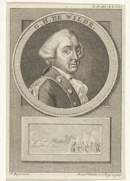 Mathias de Sallieth made this print of Johan Philip de Monté in the Netherlands, but its exact date remains unknown. The portrait provides insight into the cultural and social values of the late 18th century. Consider the visual codes: Monté's powdered wig, lace jabot, and embroidered jacket speak to his status and adherence to aristocratic fashion. The oval frame, adorned with foliage and a heraldic crest, further reinforces his noble identity. This imagery reflects a society deeply structured by class and lineage. The print also comments on the institutional history of art itself. Portraiture served as a key tool for the Dutch elite to project power and maintain social hierarchies. Prints like these circulated widely, reinforcing these hierarchies but also potentially opening them up to wider scrutiny. To understand this work fully, we might consult period fashion plates, genealogical records, and studies of the Dutch print market. Art, in this context, is not just an aesthetic object but a historical document, shaped by and reflecting the society that produced it.