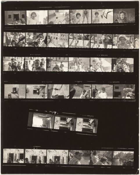 This is Robert Frank's contact sheet, "Guggenheim 708--Casper, Wyoming." It's a fascinating object, made using photographic film and darkroom processes. Contact sheets like this are the direct result of the photographer's labor, a record of their choices in the field. The very nature of film—the way it captures light and shadow—imparts a gritty realism to Frank’s images. Each frame on this sheet is a moment captured, a decision made about composition and subject. Look closely, and you can see the physical process: the sprocket holes along the edges, the frame numbers. This wasn’t about precious materials or refined techniques; it was about getting out there, observing, and documenting. Frank engaged with the social landscape directly. The contact sheet offers a glimpse into his working method. It reminds us that art isn't just about the final, polished product, it's about the whole process: the labor, the decisions, and the engagement with the world. It blurs the line between documentary, craft, and fine art.