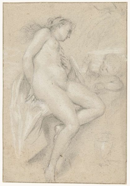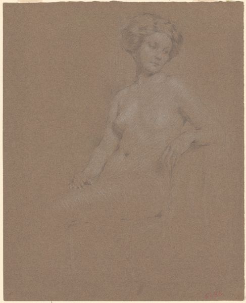 This is Hendrik Krock's "Female Model Study," a drawing now held at the SMK in Copenhagen. Krock, who served as court painter, crafted this piece within the cultural milieu of late 17th and early 18th century Europe, a period marked by rigid social hierarchies and the dominance of the male gaze in artistic representations. Here, a female figure is rendered with an emphasis on classical ideals of beauty. Yet, within the lines of this study lies a tension. While the pose might suggest vulnerability, the model's gaze seems to challenge the viewer. What does it mean to depict a woman in this way, caught between objectification and agency? Consider how this image might echo or subvert the expectations placed on women within the cultural and social structures of Krock's time. It invites us to reflect on the power dynamics inherent in representation, and the enduring complexities of viewing and being viewed.