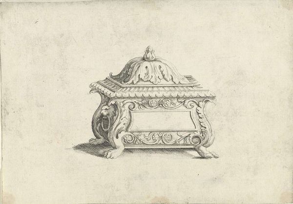 This is a pen and brown ink drawing on paper of a design for a liturgical object, created by an anonymous artist. The drawing, depicting a kneeling saint and the risen Christ, invites us to consider the intersection of religious devotion and artistic expression. During the Renaissance and Baroque periods, the Church was a central patron of the arts, commissioning works to inspire faith and communicate religious doctrine. How did artists navigate their personal beliefs and artistic freedom within the constraints of religious commissions? How do the representations of saints and Christ reflect the cultural values and power dynamics of the time? Consider the visual language used to convey religious narratives and evoke emotional responses. The kneeling saint, in a posture of submission and reverence, embodies the ideal of piety. The risen Christ symbolizes hope and redemption. The sepulcher reminds us of the reality of death. These images reflect the societal emphasis on the power of the divine, while underscoring the emotional and personal dimensions of religious belief.