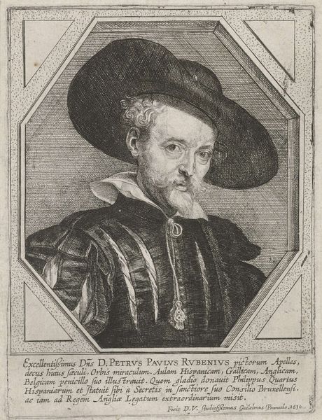 Editor: This is Hendrik Bary's "Portret van René van Châlon, prins van Oranje", an engraving dating sometime between 1650 and 1707. The detail achieved with the engraving is striking, but I find the limited tonal range a little underwhelming. What draws your eye to this piece? Curator: Notice the deliberate circular composition. It serves to contain and focus the viewer's attention directly on the subject's face and upper body. The textural contrast between the intricate cross-hatching defining his garments and the relatively smoother areas of his face are also important to understanding the artist's process. Editor: That's a great point, I was focused on the tonal limitations but hadn't considered the purpose that cross-hatching served for texture. How does this structural arrangement affect our reading of the subject? Curator: It highlights a tension between precision and suggestion. Bary uses the lines to suggest form, but never fully resolves it, leaving room for the viewer's interpretation. Look at the rendering of the beard versus the details on the cap and fur. Do you observe the marked differences? Editor: I do now! So, Bary uses different line work to represent different materials and textures. It is incredible the level of visual differentiation he creates. I am beginning to appreciate how much can be done with a singular tone. Curator: Indeed. By focusing on the relationships between these formal elements - line, composition, texture - we reveal how Bary transforms a historical representation into an evocative piece. We learn to see this "portrait" through its visual strategies. Editor: This has opened my eyes to how a simple engraving can yield so many insights through thoughtful construction! Curator: Absolutely. There’s much to be gleaned from these older techniques, just by understanding what the engraver paid attention to.