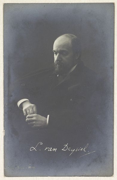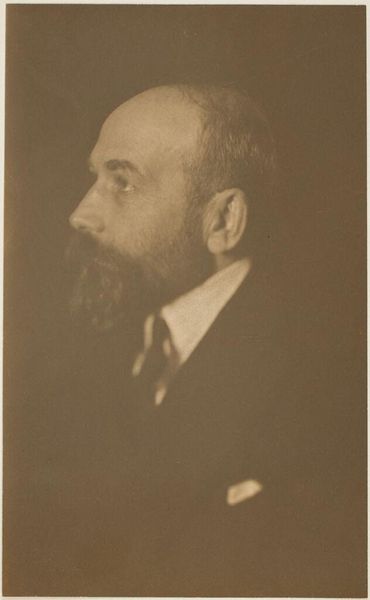 Editor: This is a portrait of Bernard Berenson by Sarah Choate Sears. I’m struck by the soft, almost dreamlike quality of the image. What symbolic weight do you think Sears was trying to capture here? Curator: Notice how Berenson's gaze is directed beyond the frame, suggesting contemplation. The soft focus, characteristic of pictorialism, lends an aura of timelessness. What enduring qualities do you think Sears wished to convey about Berenson? Editor: Perhaps intellectual depth and a connection to something beyond the immediate moment? Curator: Precisely. This image becomes a symbol of Berenson’s lasting influence on art history, capturing him as both a man and a monument. This subtle effect elevates him beyond a mere physical likeness. Editor: I see now; the portrait becomes an icon!