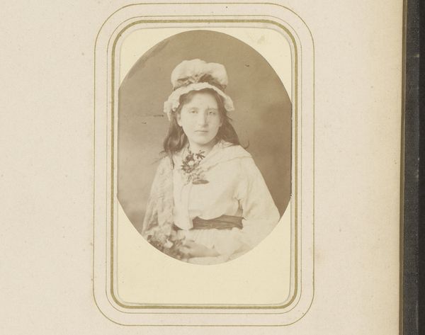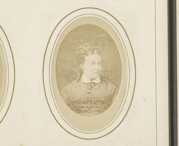 Theodorus Diepenbach created this portrait of a woman through photography. The portrait is a window into the social and cultural values of its time. Photography in the 19th century Netherlands was becoming increasingly accessible, yet formal portraits like these still signified a certain social standing. The woman's attire, though simple, speaks of middle-class respectability. The framing of the photograph, with its decorative elements, further enhances this sense of formality and the value placed on appearances. Consider how the rise of photography democratized portraiture, challenging the dominance of painting. Yet, it also replicated certain social hierarchies and aesthetic conventions. To delve deeper into this portrait, one could explore Dutch social history, the evolution of photography as an art form, and the role of portraiture in shaping social identity. Ultimately, this image reminds us that art, in all its forms, is embedded in a complex web of social and institutional contexts.