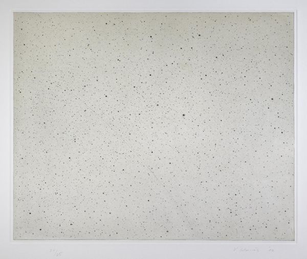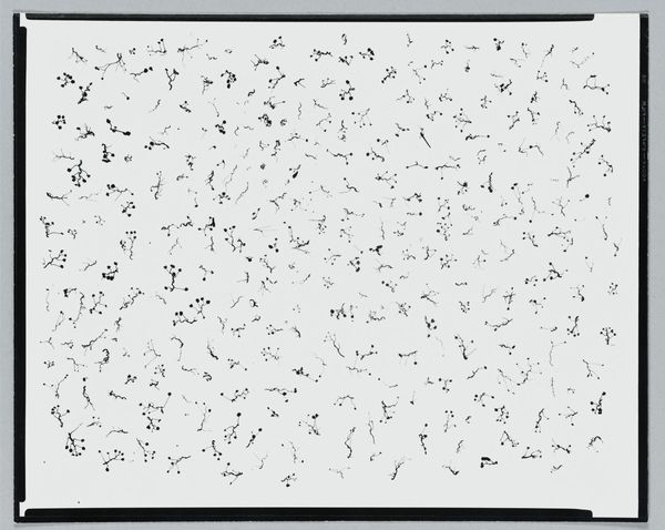 Editor: Harry Callahan's "Ivy Tentacles on Glass, Chicago" presents this fascinatingly chaotic field of tiny black marks. It's almost like a microscopic view of something organic. What do you see in it? Curator: It feels like a poignant exploration of nature's persistence, right? Callahan was photographing this around the mid-20th century, a period marked by urban expansion. I wonder, does this image speak to the tension between the built environment and the natural world, the ivy tenaciously clinging to glass, a symbol of human artifice? Editor: That's a perspective I hadn't considered, how nature perseveres even in the most artificial environments. Curator: Exactly! The fragility and resilience intertwine to represent that struggle. Editor: I'm starting to appreciate the layers of meaning embedded in something so seemingly simple. Curator: Indeed, it challenges us to consider our place within the natural order and its ability to survive.