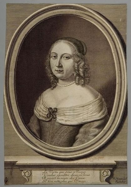 Curator: Ah, here we are, in front of Wallerant Vaillant's "Portret van een vrouw op 43-jarige leeftijd" from 1650, hanging here at the Rijksmuseum. The artwork utilizes pen, graphite, and pencil on paper. The mastery Vaillant demonstrates is really breathtaking, what is your first reaction to this portrait? Editor: She feels... resolute. Stoic, almost. And rendered entirely in greyscale, it evokes a sense of timelessness and quietude. The contrast is so skillfully employed, but what can you tell me about Vaillant’s choice of materials for this piece? Curator: Well, Vaillant, known for his mezzotints, explores a different facet of portraiture here. Using pen, graphite and pencil on paper gives the work a very delicate air compared to his printmaking, which offers an intriguing peek into Baroque techniques outside oil painting. There's something almost fragile about it. Editor: I agree about the fragility. This reminds me of a subtle play between line and light, especially observing the hatching techniques used to create the shadows on her face and the almost photorealistic details of the lace at her neckline. It feels meticulously structured, wouldn't you say? Almost mathematical? Curator: Structured, yes, but I think it's equally intuitive. Look at the subject's gaze, the almost imperceptible curve of her lips. He has truly captured not just her likeness, but her essence as a whole person with a life that existed far outside the frame. To accomplish that on paper, with the technical restrictions that must have presented...it suggests a collaborative relationship, doesn't it? Almost as though she were speaking to him. Editor: Interesting. Her pearl necklace certainly catches the eye; semiotically speaking, it serves to further enhance the subject’s affluence and status within her community. What do you think her story is? Curator: If you want my honest opinion, and if I let my imagination roam free, I envision a woman overseeing a vast estate. I think this woman is one you would *not* want to disappoint! In a world dominated by powerful men, I wonder how her daily life really looked... Editor: Well, the composition focuses intensely on her as an individual rather than a symbol; I think that contributes heavily to what makes this work stand out so much to me. Curator: A timeless echo, beautifully preserved through ink, graphite and paper! Thanks for taking a moment with me. Editor: The pleasure was all mine! It gives you a different perspective once you let your imagination start digging!
