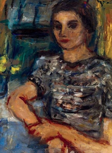 Curator: Here we see "Czóbel Béla Ülő Nő," rendered with visible brushstrokes, embodying a confident use of oil paint. I believe the Hungarian artist Béla Czóbel captured it during his fauvist period. Editor: There's a distinct intensity in her downward gaze, and I immediately read defiance, almost challenging societal expectations placed upon women of the time, especially when considering its bold colours and application. Curator: Absolutely. Czóbel's engagement with Fauvism put him at the forefront of avant-garde movements, particularly in expressing subjective emotional responses rather than adhering to academic representations. Considering how deeply patriarchal art institutions were at the time, embracing fauvism feels like a radical act itself. Editor: That's key. This impasto technique, this visceral handling of paint, translates directly to a rawness of emotion. The vibrant, seemingly clashing colors and distorted figuration break from convention. It’s an intriguing dialogue between form and inner state, hinting at the inner struggles and constraints imposed on the subject. Curator: Considering its time, this piece serves as a social document, highlighting modernism’s efforts in capturing the complexities of a changing world. Czóbel pushed the boundaries of representation, impacting subsequent generations of artists who sought alternative expressions of identity. Editor: I see "Czóbel Béla Ülő Nő" as both a historical record and a continued commentary on issues of representation, gender roles, and agency that persist today. Art’s ability to embody and challenge cultural norms, even silently, remains profoundly powerful. Curator: Indeed. It speaks to the dynamism of artistic creation in reflecting and challenging the times, fostering public dialogues around socio-political shifts. Editor: Art like this reminds us that visual representation can be a potent form of cultural disruption, with layers to dissect beyond aesthetic.
