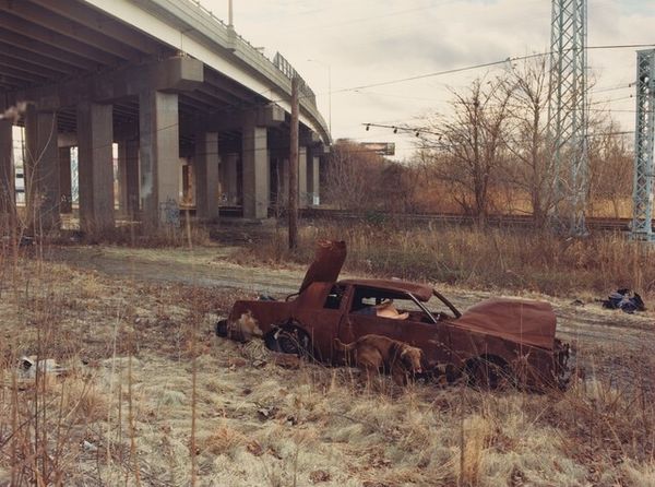 LaToya Ruby Frazier made this gelatin silver print, "The Bottom," to capture the uneasy co-existence of industry and community. Frazier’s choice of black and white is critical. Stripping away color, she emphasizes the stark contrast between the natural environment and the industrial architecture looming in the background. The photograph's texture, achieved through traditional darkroom techniques, further underscores this tension. The abandoned car in the foreground speaks volumes about labor, class, and consumption. The image is not just a depiction of a place, but a document of the social and economic forces that have shaped it. By using photography, a medium often associated with objectivity, Frazier challenges us to confront the subjective realities of marginalized communities. This work bridges the gap between documentary and fine art, inviting viewers to reflect on the complex relationship between industry, environment, and the human cost of progress.