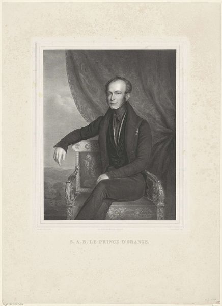 Christiaan Lodewijk van Kesteren made this portrait of Jan van Geuns, using lithography. This print exists within a historical context where portraiture was often reserved for the elite, solidifying their status and legacy. Here, Jan van Geuns is depicted with the quiet confidence of a man of stature. His gaze meets ours directly, yet there's a softness in the rendering, particularly in the delicate shading around his eyes and mouth, offering a glimpse into his inner life. The trappings of his position – his formal attire, the book at his side – speak to his achievements and intellectual contributions. Van Geuns’s identity as a man of science is constructed through these symbols of status, reflective of the societal values placed on knowledge and academic success during his time. This portrait transcends mere representation; it invites us to reflect on the values and power structures of the 19th century. The image leaves one to ponder about the relationship between public persona and private self, and how such narratives shape our understanding of history.