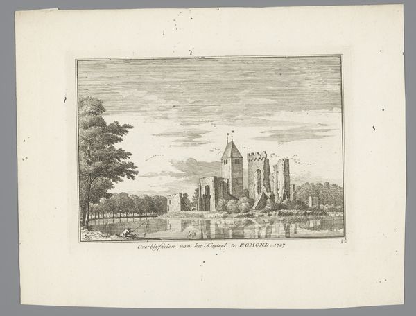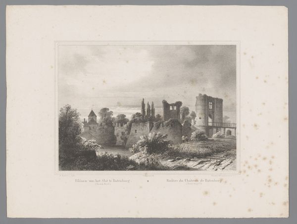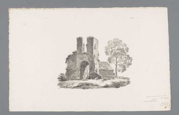 This is E.W. Thompson's "Gezicht op de ruïnes van de abdij van Clare," an engraving from the late 18th or early 19th century. It captures Clare Abbey, a site laden with centuries of religious and social history. Thompson's image evokes the aesthetic of the picturesque, popular in a period of great social upheaval. The ruins stand as a stark reminder of shifting power dynamics, particularly the dissolution of the monasteries under Henry VIII. What was once a center of spiritual and economic influence now crumbles, open to the elements and the gaze of passersby. The romanticization of ruins often masked the very real consequences of dispossession and cultural loss. Consider what it meant to witness such decay, and how the image itself might serve to both critique and aestheticize such profound transformations. In its delicate lines and muted tones, Thompson’s print invites us to reflect on the past and its enduring presence in the landscape.