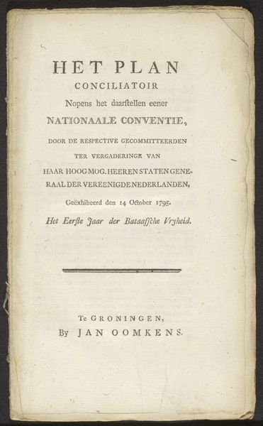 This is the cover of "Album met portretten van Franse politici" made in 1790 by Pierre Charles Coqueret. The album cover has a muted, gray tone that speaks to the somber mood of revolutionary France. The cover is dominated by a rigid structure of text, arranged in clear, stacked lines. This linear organization suggests a hierarchy, but it's disrupted by the central emblem of "La Loi" and "Le Roi" indicating a society in flux, caught between the old order and the new. The typography itself becomes a semiotic system, with the varying sizes and styles of font emphasizing different aspects of the political message. The texture of the paper adds another layer. The slight imperfections and unevenness hint at the handmade quality of the print. The album cover destabilizes our expectations of absolute authority, suggesting instead an era of negotiation and change.
