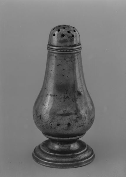 Editor: This is a silver communion cup with paten cover made in the late 16th century. It’s simple but striking. What symbolic weight does a piece like this carry? Curator: A communion cup is never *just* a cup. Consider what it holds: wine, which becomes the blood of Christ. The vessel itself transforms into a sacred object. What stories and memories might be held within its form? Editor: It looks rather austere. Were these types of objects typically so unadorned? Curator: Sometimes. Purity and simplicity can also carry strong messages. Think of monastic orders, valuing humility. What does the material – silver – itself suggest? Editor: Well, silver has always been associated with value and purity. Maybe the craftsmanship and material speak to devotion. Curator: Exactly! And look closely – are those small markings just decoration, or something more deliberate? They almost resemble the hallmarks or maker's marks you see even today. Each symbol contributes meaning. Perhaps signaling the quality and endorsement of a specific silversmithing workshop or guild? These details serve as powerful, if subtle, endorsements and reassurances. How does that affect the object’s function? Editor: I never thought about the economic aspect of religious objects, only the spiritual. The added markings definitely contextualize the object in the culture that made it. Curator: Indeed. Even a "simple" cup is a confluence of social, religious, and artistic forces, resonating far beyond its immediate function. A lot can hide in plain sight.