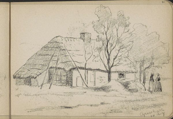 This landscape with buildings was sketched by Louis Apol in the Netherlands, sometime in the late 19th or early 20th century. At first glance, it's a simple drawing of a humble country dwelling, yet Apol's landscapes fit within a broader cultural context. Apol was part of the Hague School, a group of Dutch artists who reacted against the rigid academic style of the time. They sought to represent the everyday life of the common people and the Dutch landscape. They often worked ‘en plein air’ or outdoors, in order to capture the realistic effects of light and atmosphere. Apol gained recognition for his winter landscapes in particular, although in this sketch one sees the bones of the landscape unadorned. He built his career within the art market, exhibiting regularly and gaining patronage from wealthy collectors. As art historians, we consider the institutional structures in which artists like Apol operated. We can research exhibition records, collectors' correspondence, and art criticism from the period to understand his place in the art world of his time.