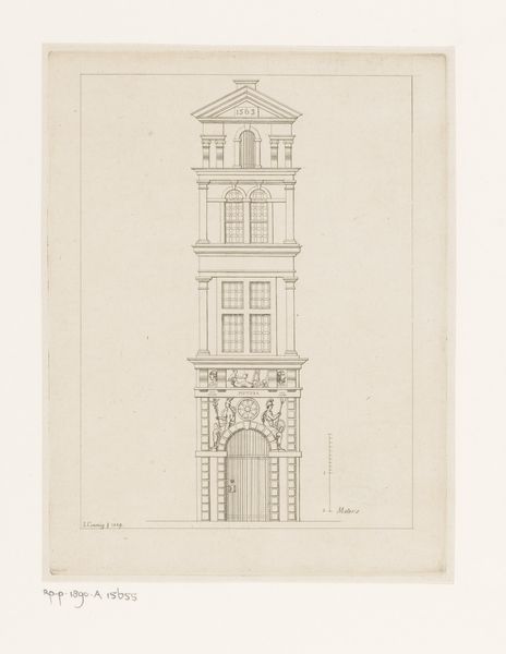 Editor: This is "Dwarsdoorsnede van een huis," or "Cross-section of a House," created sometime between 1730 and 1790. It’s a drawing on paper, using engraving and architecture as its medium. I find it fascinating how it reveals the interior layers of this house; it's like looking into a dollhouse but on an architectural scale. What strikes you most when you see it? Curator: Oh, what a delightful slice of domestic life – quite literally! The level of detail invites the imagination to wander through each room. It feels like a secret peek into the past. The bareness in materials adds a sense of ghostliness, like peering at a vanished time or perhaps a home never built, existing only on paper. What do you imagine life would be like within those walls? Editor: That’s such a fascinating point – that the drawing offers a bare essence that makes one envision lives yet to be born or those of a bygone era. With the high windows and simple staircase, I am filled with questions on the lifestyle back then, such as the level of light, noise, privacy etc. that might have played out inside the home. The floorplan reminds me of modern building layouts with efficient room arrangement and open space living. Curator: I, too, sense a modern quality. Note also the perspective; it's both precise and a bit dreamlike, blurring reality and the imagined home. It reminds me of childhood when I imagined floorplans in the sand. Do you think it inspires artists, and if so, how? Editor: It surely does. It inspires the viewers to consider how simple lines and designs on paper can convey immense aesthetic impressions that invoke imaginations and possibilities, which is such a cool concept! Curator: Precisely! A dance between technique and interpretation, between what's drawn and what we dream, a testament to architecture being art, a time machine captured on paper.
