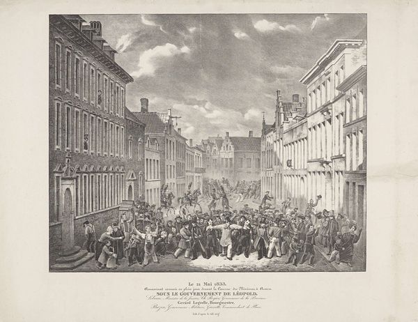 Joseph Collyer produced this print, "Ontmoeting van soldaten op College Green te Dublin," using a technique known as engraving. The process begins with a metal plate, traditionally copper, into which the artist meticulously carves lines. Ink is then applied to the plate, filling these incised lines. Excess ink is wiped from the surface, and the image is transferred to paper under high pressure. The resulting print showcases the artist's skill, and the ways in which they have used line work to create a sense of depth, texture, and atmosphere. The image celebrates the Irish Volunteers, a citizen army formed in the late 18th century. Their purpose was to defend Ireland against invasion during the American Revolutionary War. Collyer’s print immortalizes this moment of civic pride, but it also subtly acknowledges the social dynamics at play. The crisp precision of the engraving, a process that demands control and exactitude, mirrors the discipline of the assembled soldiers. The printmaking process, with its reliance on skilled labor, reflects the broader context of 18th-century craft and industry. Ultimately, by considering the materials, and the making of this print, we gain deeper insight into its cultural significance.