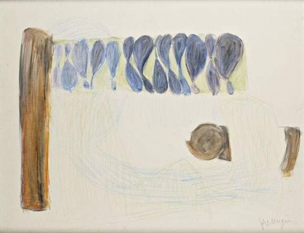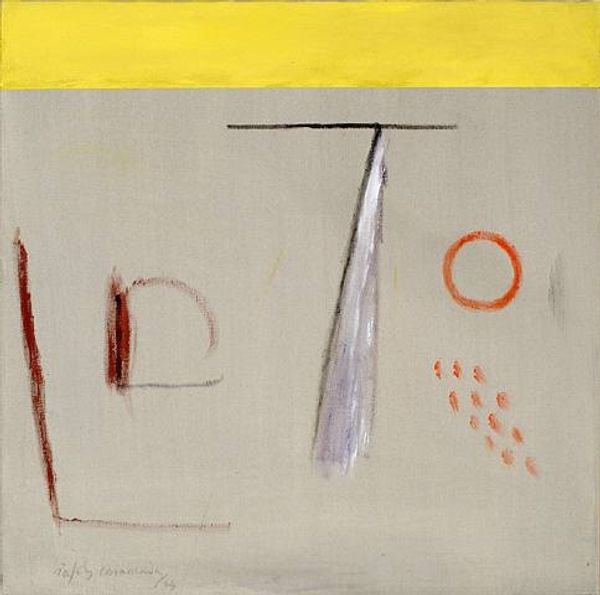 Curator: Welcome. We are standing before an intriguing abstract work, simply titled "Untitled," by the Spanish artist Albert Rafols-Casamada. Its precise date is, as yet, unknown, but it appears to be a mixed media composition that utilizes acrylic on canvas. Editor: My initial reaction is one of muted tranquility. The palette is largely restrained—dominated by grays and off-whites, accented with soft blues, yellows, and touches of earthy brown and orange. It's as if a dreamscape has been delicately rendered. Curator: Precisely. Notice how the various geometric forms—the squares, rectangles, and linear elements—are not presented in rigid, structured ways, but rather with softened edges and diffused boundaries. This creates a sense of fluidity and ambiguity. Look at how Rafols-Casamada creates dynamic tensions between opacity and transparency. Editor: I wonder, given Rafols-Casamada’s artistic trajectory rooted in post-war Spain, what this visual language communicates about that historical context. Did these forms become a way to circumvent representational limitations and create more complex and allusive meanings about power, or perhaps protest under repressive structures? I'm seeing almost an anti-establishment rebellion in abstract form. Curator: It’s a plausible reading. The painting seems like a rejection of figurative representation and conventional spatial arrangements; an attempt to express something beyond the visible world, operating on a purely aesthetic level. It offers a composition of forms engaged in dialogues of balance, tension, and chromatic harmony. The way he orchestrates line and shape reminds one of musical notation—a visual symphony of form and color. Editor: Absolutely, and it’s not just an aesthetic experience—consider how modern abstract works offered liberation to the oppressed—particularly within Spain under Francoist repression. Geometric abstraction, while seemingly innocuous, becomes a form of subtle dissidence, a veiled expression of alternative possibilities. And this tension between form and meaning allows for multilayered audience reception; some understand pure geometry, others locate it politically. Curator: Your viewpoint enriches the dialogue by including societal and political concerns to an understanding of the artwork's intrinsic qualities. Editor: Likewise, this careful look at Rafols-Casamada's compositional expertise sharpens my comprehension of its symbolic possibilities.