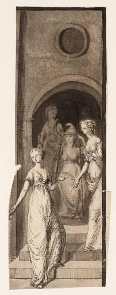 Editor: This is Friedrich Wilhelm Zimmermann’s "Girl Distributing Grapes," a print from the Harvard Art Museums. There's a sense of abundance and perhaps generosity in the act depicted. What symbols stand out to you? Curator: The grapes, of course, are loaded with meaning. Think of their association with Bacchus, god of wine, ecstasy, and theatre. What emotions do the figures’ postures evoke in you? Editor: A kind of serene beneficence from the grape-giver, and hopeful anticipation from the child. Curator: Precisely! The image evokes classical ideals of charity and maternal care but does it also reflect its historical context? Perhaps the anxieties around access to resources? Editor: That’s a darker, interesting layer I hadn’t considered. Thank you. Curator: My pleasure. It’s a reminder that symbols are never static, always adapting to their time.
