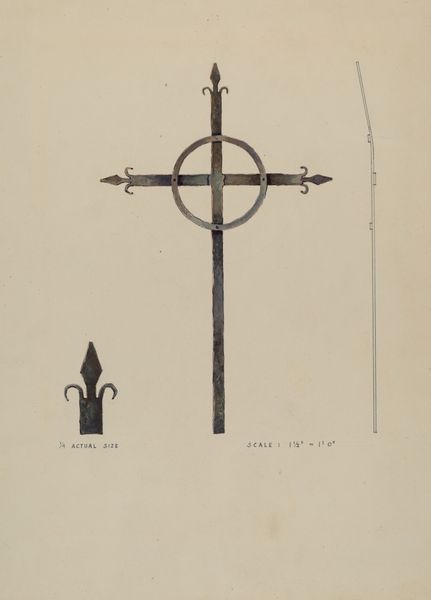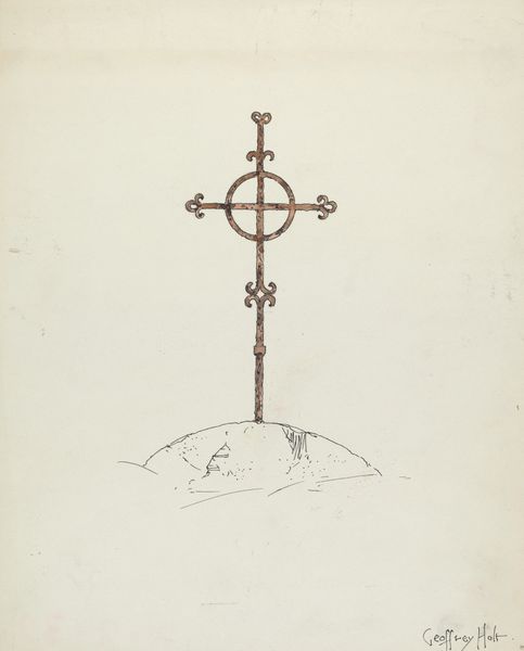 Al Curry made this drawing of a cross, we don't know when. The way it’s rendered, with a kind of smoky graphite, brings a certain gravity and solemnity. It makes me think about the process of artmaking, you know, the slow buildup of marks. There’s a real sense of weight to the object itself, especially in the stone base. You can feel the pressure of the pencil on the paper, building up those dark shadows between the stones. And then, look at the details in the ironwork above, the delicate curls and the heart shape. It's like Curry is trying to balance the heaviness of the stone with the lightness of the spirit. The linear exactitude of the central motif stands in contrast to the more blurred and tonally ambiguous elements around it. It puts me in mind of the drawings of Cy Twombly, who could also create such a feeling of monumentality with just a few lines. Art is an echo chamber, always referencing and reinterpreting. Ultimately, this piece reminds us that art is not about fixed meanings but is an open ended conversation.