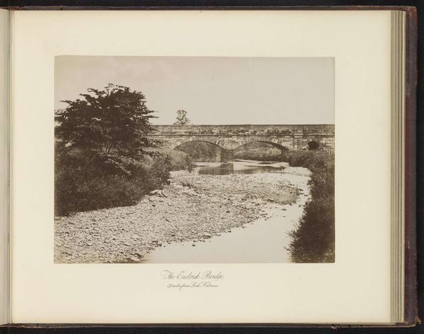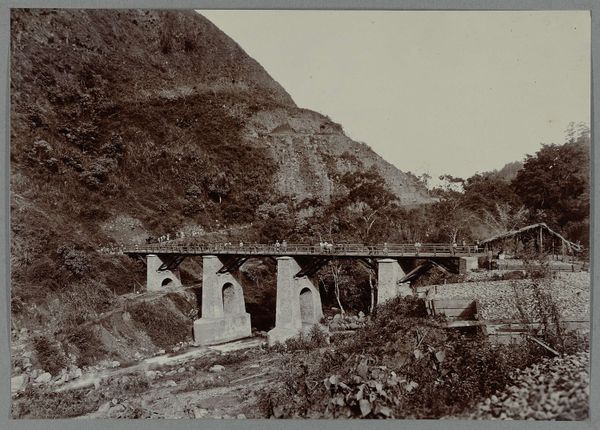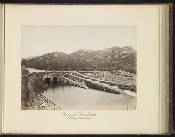 Editor: Here we have "The Duchray Bridge, 7 1/2 miles from Loch Katrine," a photograph taken before 1889 by T. & R. Annan & Sons. It's a very crisp, detailed landscape, but also seems quite… industrial. What do you see in this piece? Curator: What strikes me is the tension between nature and industry that the image captures. The bridge, a clear sign of human intervention, is juxtaposed against the wild, untamed landscape of the Scottish Highlands. How does this interplay speak to the moment in history when it was created, do you think? Editor: I hadn't really considered the historical context. I suppose the late 19th century was a time of rapid industrialization. So, you’re suggesting that this photograph might be making a comment about the impact of industrial progress on the natural world? Curator: Exactly. Consider also the political dimension. The Scottish Highlands experienced significant social and economic changes during this era. Land clearances, urbanization, and emigration dramatically reshaped the landscape and the lives of its people. How might the bridge symbolize both connection and disruption in that context? Editor: I guess it could be interpreted as both. Connecting communities, but also disrupting the traditional way of life. So the bridge is a physical link, but also a symbol of larger societal shifts. Curator: Precisely. And the photograph itself? Doesn't it also represent a certain perspective? Think about who had access to photography at this time, and whose stories were being told, or left untold. Editor: That’s a really interesting point. I hadn't thought about the power dynamics inherent in who gets to represent a landscape. I’m beginning to see this image in a whole new light! Curator: Hopefully this inspires you to think more critically about the intersection of art, history, and society, and to question the narratives embedded in visual representations.