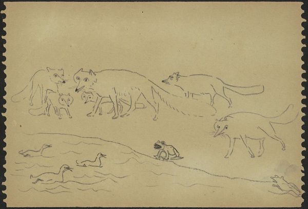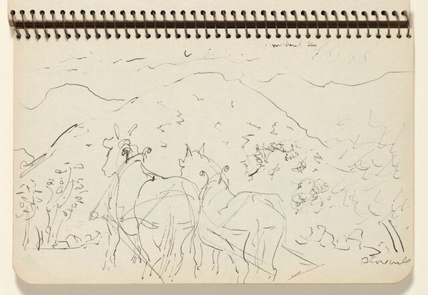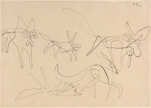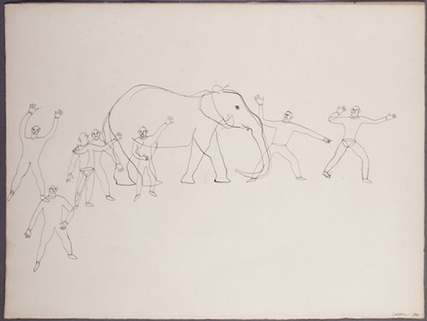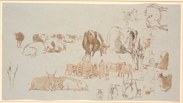 This is "Men Roping a Bull and Driving Cattle," from the Tomb of Djari, it has a wonderful sense of rhythm and the everyday, doesn't it? The artist uses a restrained palette, focusing on line and form. It's all about capturing movement and energy, and how these guys managed unruly animals, it’s amazing to think of the process behind this image, the careful observation and translation of a lived experience into a graphic form. I love the contrast between the dynamic energy of the men roping the bull and the gentle, slow pace of the cattle below. There's a real sense of texture in the shading of those cows. Notice that the artist chose to render the bull with only simple outlines, suggesting its wild, untamed nature. To me this work has echoes of Guston's simple forms, in the way it balances abstraction and figuration. It reminds us that art is really about exploring and interpreting the world around us.