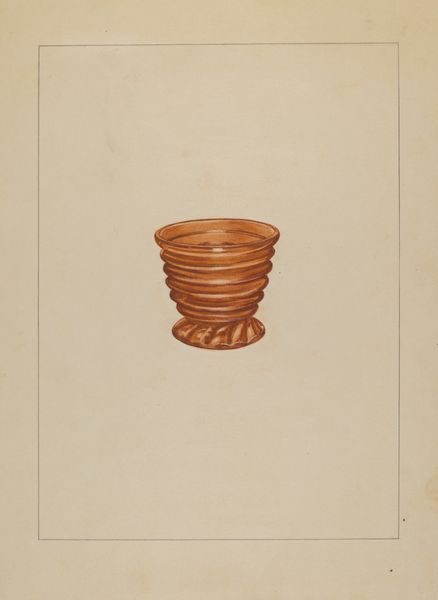 Editor: This is Irene Lawson’s “Comb,” a watercolor drawing from around 1940. It feels very straightforward, a simple, almost clinical depiction of an everyday object. What do you see in this piece? Curator: The seeming simplicity is deceptive. Lawson, by focusing on such an intimate object, invites us to consider its social and historical context. A comb isn't just a comb, is it? It speaks to notions of grooming, appearance, and by extension, identity, particularly concerning gender and class. What does it mean to depict *this* particular comb? Is its material significant, mimicking tortoiseshell perhaps hinting at luxury and the social performance attached to it? Editor: That's interesting; I hadn't thought of it that way. I guess I was seeing it more from a purely formal perspective – the shape, the detail of the coloring, the play of light. Curator: Exactly, but formal choices always have a *why* behind them, don’t they? The careful realism prompts us to ask why Lawson chose to represent it this way. Was she perhaps engaging in a quiet act of defiance by immortalizing something so quotidian during a period of significant social upheaval? Editor: I suppose so! It does seem to elevate the ordinary, almost in the style of a still life painting... so, by choosing such an unassuming item, she might have been making a statement about the value inherent in everyday life and challenging existing hierarchies? Curator: Precisely! Lawson is positioning this domestic object within the wider social fabric. And by asking us to look closely, she asks us to reflect on the very act of looking, and what we choose to value and preserve. Editor: Wow, I'll never look at a comb the same way again! Curator: Nor should you! Art has the power to transform our perspectives, prompting critical engagement with the world around us.