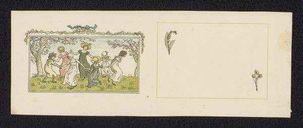 Curator: "In the Park," tentatively dated between 1915 and 1925, attributed to Eliza Draper Gardiner, presents a charming scene rendered through colored pencil drawing. The work, residing here at the Minneapolis Institute of Art, immediately strikes a chord of gentle nostalgia. What's your initial read? Editor: My first thought is how much the image feels enclosed, the child hemmed in. It’s this tension between childhood innocence, evoked by the playful composition, and this sort of formal restraint through the tonality and shallow space that piques my interest. Curator: Precisely. And that tension manifests clearly within the making. Note the distinct graphic style, how Gardiner seemingly adopts the flatness of ukiyo-e prints combined with her drawing technique, blurring the distinction between "high" art and popular craft practices, likely influenced by the Arts and Crafts movement and a fascination with global sources for the creative process. The production methods she used clearly echo mass reproduction and consumer access. Editor: Yes, the flatness immediately spoke to me. There’s an overt awareness of surface; the way the pigments interact reminds me of late 19th-century post-impressionistic exploration. I am compelled by Gardiner's compositional structure. She segments the pictorial space. The curve of the tree, the positioning of the figure, it directs the eye to weave and return. It almost suggests a stage set. Curator: Agreed, this is no straightforward landscape. Think of how it was encountered, reproduced and traded, consumed within an early 20th-century market shaped by mass culture. She also complicates the tradition of figuration by portraying a very modest individual, reflecting changing social class perceptions of everyday experiences and representations of labor and childhood. Editor: It begs the question, does this accessibility, the image's reliance on familiar compositional structure coupled with overt signs of manual labor, allow the work to transcend pure representation? Gardiner asks us to consider not just "what" is depicted but "how" it is visualized and circulated, thereby revealing meaning. Curator: I find it intriguing that this print also offers, simultaneously, a moment frozen in time and a testament to the historical currents that influenced its making. Editor: So true. Considering the form and context has allowed us to look more intently at how Gardiner achieves a very sophisticated balance between charm and subtle social commentary.