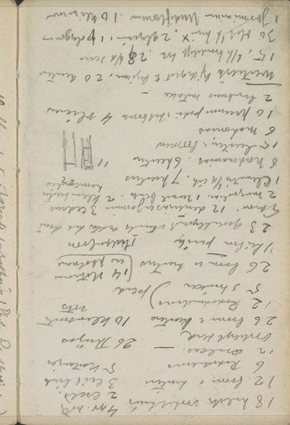 Curator: Breitner's "Annotaties," dating from around 1900-1901, provides a fascinating window into the artist's creative process. This pencil drawing on paper, housed here at the Rijksmuseum, acts almost like a page torn from a diary. Editor: It's raw, isn't it? The immediacy of the lines gives it a powerful presence, despite being a sketch. I'm immediately struck by the sense of fragmentation. It's less about a completed view and more like captured glimpses. Curator: Indeed, and that speaks volumes about Breitner's social positioning. He was deeply engaged with the everyday realities of Amsterdam. As a flâneur, he captured transient moments, and he moved across social boundaries that afforded him specific observations of gender and class at the time. He was intensely interested in working-class women in Amsterdam, for instance, capturing what many art historical canons before often erased. Editor: I see the impressionistic spirit in that capturing of fleeting moments. Tell me, do you read that fragmented sensibility into the line work itself? Notice the light, almost hesitant pressure of the pencil? It creates an almost dreamlike image quality. Curator: Absolutely. His choices highlight how the individual navigates modernity. The unpolished feel disrupts conventional notions of beauty, aligning him with social movements pushing for visibility. There's a conscious effort to challenge established hierarchies through his representation of ordinary life, giving agency to previously ignored subjects. Editor: It makes me consider his contemporaries and predecessors: Manet or Degas, especially in their fascination with modern life. Looking at this sketch, the text jotted across the page—do we consider that merely annotation, or does it play a compositional role? How does this integration shape the drawing's structural dynamic? Curator: The text isn't just annotation; it’s intrinsic. It embeds the work within a specific time and context, resisting timeless readings. He invites viewers to become detectives piecing together the stories held within this one material sheet of paper, blurring art and life and inviting broader participation within the artwork's meaning. Editor: A reconstruction as lived experience. This piece makes you really appreciate how his subjective perceptions transformed ordinary scenes, it is incredible how it has this quality even in a mere drawing, in what most people would oversee as "something simple." Curator: Exactly. Breitner shows us that the revolutionary can be found not just in grand narratives, but also in the mundane corners of everyday life. Editor: A perfect note to end on. Thank you.