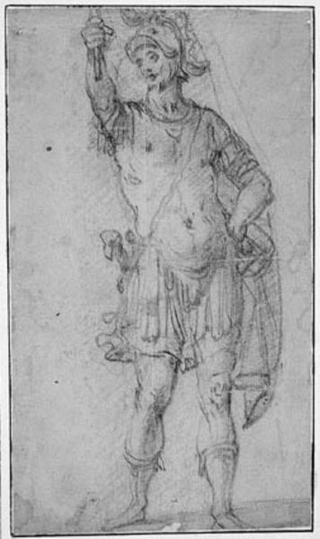 Editor: We're looking at "Kneeling Man in Cape, Facing Right" by Francesco Curradi, dating back to sometime between 1570 and 1661. It's a charcoal drawing, and it feels incredibly devotional, almost mournful. What draws your eye when you look at it? Curator: The upward gaze, immediately. Notice how it's rendered? It speaks volumes, doesn't it? It evokes centuries of supplication, of reaching towards something beyond. What stories do you think such imagery tells about human longing, about our enduring search for meaning in the Renaissance? Editor: That's a good point. The angle and the pose of the figure do hint at universal experiences. But who might this man be? What's the specific historical context that brings that imagery into focus? Curator: Precisely! The Renaissance wasn't just a period of artistic blossoming, it was a time of religious upheaval. Figures in such drawings were created with an intent – possibly preparation for a larger work, and designed to tap into very specific cultural and spiritual ideas. Can you detect anything in his clothing, the angle of the light, or the very texture of the charcoal, which might connect to that cultural landscape? Editor: Well, his garment looks fairly simple. It suggests humility. And the stark contrast created by the charcoal gives the whole scene a solemn quality, like a dramatic spotlight on piety. Curator: The simplicity, yes, a powerful symbol. It prompts reflection on what constituted holiness in the collective imagination of that era. I always ask myself, what elements endure from those artistic visions? What resonates across the centuries and why? Editor: I never considered how much of that era could be encapsulated in a single drawing, but the visual vocabulary carries so much history within it. Thanks, this has been incredibly enlightening. Curator: Indeed! Examining how visual language morphs through history… that’s where the real discoveries lie.