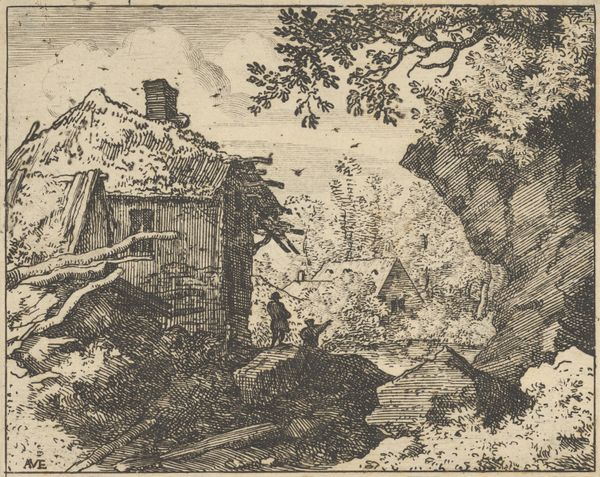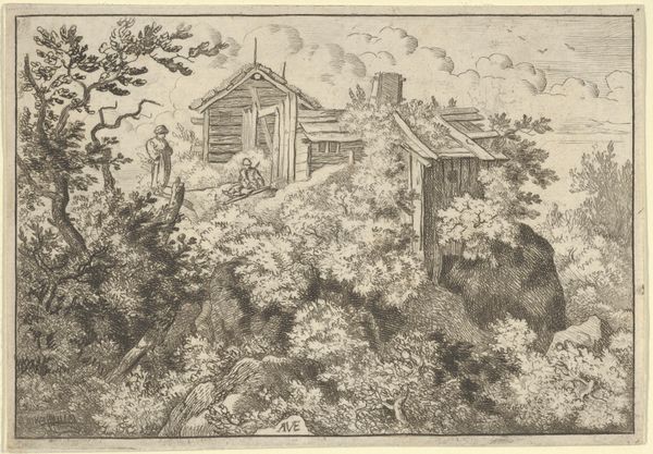 Hanns Lautensack made this etching, Cabin Among Trees, during the mid-16th century. It depicts a humble dwelling nestled within an abundant forest. The dense foliage and the presence of a simple fence suggest a life lived in close proximity to nature, a theme resonant with the social and economic realities of the time. Made in Germany during the Reformation, the print reflects a culture grappling with religious upheaval and the rise of individualism. We might consider how this image presents a vision of rural life, perhaps offering an alternative to the established social order, with its hierarchies of urban life and religious institutions. Was the artist, either consciously or unconsciously, critiquing the institutions of his own time? As art historians, we can draw upon historical records, literature, and other visual sources to deepen our understanding of this artwork. We can investigate the social structures of 16th-century Germany and the role of landscape imagery in shaping cultural values and challenging norms.