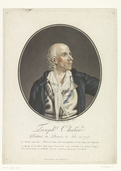 Editor: Here we have Andreas Flint’s print of “C.H. Pram,” created sometime between 1767 and 1824. The subject’s profile, framed in this dark oval, feels so formal, almost severe. What do you see in this piece? Curator: This portrait, with its Neoclassical style, strikes me with its stark simplicity. Look at how Flint uses the engraving to emphasize the subject's strong profile. What do you notice about the gaze? Editor: It's averted, directed outside the frame and almost haughty. Does that have significance? Curator: Absolutely! The averted gaze was a popular tool, used in portraiture, symbolizing intellect and contemplation, turning inward towards philosophical thinking rather than engaging directly with the viewer. How does this sit in the context of 18th-century society? Editor: Given the period, that makes sense. Perhaps portraying Pram as an intellectual was meant to elevate him? Or maybe communicate a cultural ideal? Curator: Precisely. It speaks to the values of the Enlightenment, placing reason and intellectualism at the forefront. Portraits of this era served as powerful statements of identity. Look closely at his hairstyle; it almost hints at his allegiance and the changing dynamics of societal roles at the time. Notice the restrained elegance in his attire too. Editor: So every element—gaze, hair, clothing—becomes part of a visual language contributing to his public image. It's fascinating how much can be communicated through seemingly simple choices. I had just seen it as an old portrait. Curator: It’s a mirror reflecting the aspirations and self-perception of an era, communicated through symbolic choices made for the sitter and the society around them. It reminds us to look beyond the surface and seek layers of meaning within the artwork, even an engraved portrait such as this.