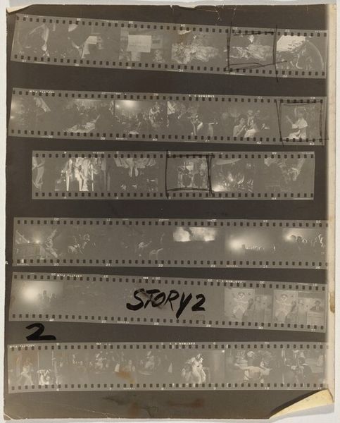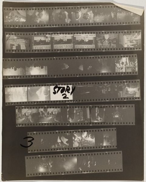 Robert Frank’s “Bal des Beaux Arts 5” is a photographic contact sheet of uncertain date, documenting a ball, perhaps in Paris. You know, I find contact sheets so intimate, like peeking into the artist's mind. Frank’s images aren’t about perfect clarity; they're grainy, with high contrast, like memories flickering at the edge of perception. The emulsion is thick, almost gooey, adding a layer of physicality that feels immediate and raw. Look at the sequence of images, the slight variations, like a painter’s studies. Each frame captures a moment, but together they suggest a narrative, a sense of movement and time passing. It reminds me of those early Muybridge motion studies but with a looser, more intuitive feel. It's like Frank is saying, "Here’s a story, but it's up to you to piece it together." I see echoes of Daumier’s social observations, but with a modern, more personal edge. Art’s not about answers; it's about asking the right questions.