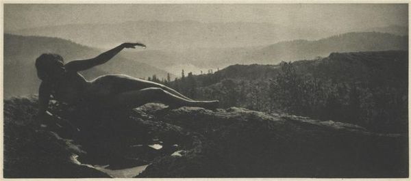 Editor: This is Edward Sheriff Curtis’s "Shores of Walker Lake." It's a beautiful, sepia-toned photograph. There's something very serene about the figure reflected in the still water. What should we know about the context in which Curtis was working? Curator: Curtis aimed to document what he saw as a vanishing way of life. But his photographs, while seemingly objective, were often staged to fit prevailing romantic notions of Indigenous people. Consider the implications of framing a culture as disappearing. Editor: So, the image might tell us more about the dominant culture's perceptions than the reality of the people he photographed? Curator: Exactly. And how those perceptions were used to justify certain policies and actions. What do you make of the subject's gaze? Editor: It’s averted, almost melancholic, furthering that narrative of a “vanishing race,” perhaps? It’s helpful to think about how these images were received and used at the time.