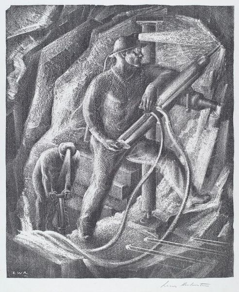 Curator: Waldemar Titzenthaler captured this image, "Industrial Problems, Types of Working People: Germany. Blacksmith; Cooper; Boiler-maker; Stonedresser; Toy-maker; Washwomen; Marketwomen: Types of German Workmen: Boiler Maker," around the turn of the century. It's a fascinating glimpse into the working class. Editor: My first thought is how intensely this man is framed by the very object he is building. It's like he's being consumed by industry itself! Curator: Absolutely, and the composition speaks volumes about the industrial era's focus on labor and production. Titzenthaler documented these trades to depict what he called "Industrial Problems." Editor: I'm struck by the weight of that hammer, mirroring the weighty responsibility on his shoulders and the almost suffocating atmosphere of the factory surrounding him. Curator: The photograph does bring attention to the politics of labor and the dignity – or lack thereof – afforded to the working class in that era. Editor: In all, it’s a picture that stays with you; a reminder of the human spirit amidst the cogs and wheels. Curator: Indeed, a stark snapshot prompting thoughts on industrial transformation.