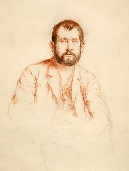 Curator: Lovis Corinth gives us a peek into his soul with his "Self-Portrait with Beard." Editor: It’s striking how raw it feels, almost like a fleeting thought captured in sanguine chalk. You can almost feel the texture of the paper. Curator: Indeed, the medium lends itself to that immediacy. It's like he's sketching out not just his features, but the very act of self-reflection. Editor: Red chalk wasn’t unusual for underdrawings at the time, but here, it’s the finished work itself. Wonder what that says about the commodification of the sketch and the artist's labor. Curator: Perhaps he's hinting at the layers of artifice we apply to ourselves, even in a self-portrait. What is left for us to truly know of an artist's intentions? Editor: Or maybe he was simply short on materials that day! Either way, the sketchiness invites us to collaborate, to fill in the blanks. Curator: It's a tender reminder of the artistic process. Editor: Yes, it’s a reminder that even the most accomplished among us are perpetually works in progress.