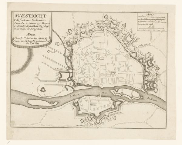 Curator: This remarkably detailed print offers a plan of the siege of Tournai, dating from 1709 to 1729 and crafted by Pieter van Call the Younger. Note the intricacy of the linework. Editor: Intricate indeed, it is stunning. At first glance, its delicate nature belies its intended use of brutal war. Curator: Absolutely, it's a prime example of baroque artistry. Consider the cartouches framing the title and legend. A grand lion presides over floral flourishes. The detailed geometry indicates an attempt at precise representation. Editor: Geometry that serves military strategy. This map highlights the societal emphasis on order and reason of the early 18th century, even amidst warfare. The defensive star forts are presented as rational, almost beautiful, shapes imposed on the land. It’s quite a chilling aesthetic statement when viewed this way. Curator: I'm intrigued by how line itself communicates structure. Note how van Call varies the weight and density to differentiate between built environment and natural features. A testament to engravings’ versatility in mark making. Editor: The density visually conveys the weight of political ambitions. Tournai's capture was crucial to the Allied advances, shifting balances in the War of the Spanish Succession. The map wasn’t just informational. It became an emblem of conquest. These prints aided the victors’ self-aggrandizement. Curator: A tool for power manifested in design, quite so. The strategic depth communicated through these linear arrangements certainly transcends mere cartography. Editor: To delve into prints from a historical viewpoint, such as this rendering, unveils not only artistry, but exposes social and military intentions. Curator: Agreed, such elegant articulations in graphic-art unveil structures of thinking embedded in early eighteenth century visualizations of war.