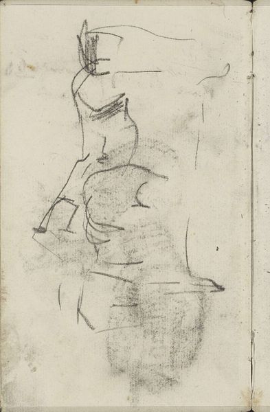 Curator: Welcome. Here we have George Hendrik Breitner's sketch from around 1888, titled "Head and Bust of a Woman," rendered in pencil. It resides here at the Rijksmuseum. Editor: There's a definite lightness of being that jumps out. Fleeting. As if Breitner just caught these folks in the corner of his eye, a quicksilver impression… ghostly. Curator: Note how Breitner deploys a minimalist, almost telegraphic, style. The composition sacrifices details for capturing only the essential lines and forms of its subject. The faces themselves barely coalesce beyond suggestion. Editor: Right! It's almost a phantom limb feeling. You sense a presence without all the pieces being there, you know? This raw, incomplete feel is incredibly modern. You see a world of implication without precise dictates. It ignites my creative brain like nothing else. Curator: The rapid strokes and erasures visible throughout this work invite questions of completion and artistic intention. It exemplifies the Impressionist desire to capture fleeting moments—essences—rather than strict, immutable forms. Editor: Exactly. Think of musical improvisations, sketches—jazz but on paper! You get hints of character; that hat and those confident shoulders whisper a whole biography, or several for that matter. I can write short stories simply looking at the two figures. Curator: Such drawings offer a direct glimpse into the artist's process, a tangible record of decision-making within a given moment. What strikes me most is its subtle defiance of conventional portraiture expectations. Editor: Agreed! It rejects perfection for feeling, and leaves so much up to your interpretation and feelings. Which, come to think, mirrors how we make memories... Curator: It's interesting to reflect on this drawing as we conclude. Editor: Yeah, definitely has the echoes of ghosts who are both present and still in creation. Delicious tension in this piece.