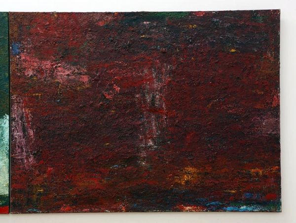 Curator: Tiberiy Szilvashi's "Untitled" from 2006, rendered in acrylic and impasto, certainly makes a strong initial statement. Editor: Yes, the immediate impression is of a rather somber landscape. Stark, almost brutal, with that thick application of paint. Curator: The texture alone provides an undeniable richness. Beyond mere abstraction, there's a quality reminiscent of matter painting here, emphasizing the physical presence of the paint itself. Does that tactile element affect your read? Editor: Absolutely. It's impossible to ignore. It signals that the materiality itself is meaningful. The restrained color palette–mostly grays punctuated by small amounts of red, green and black–creates a distinct emotional register, heavy and contemplative, despite the energetic brushstrokes. The forms, the heavy horizontals... could there be some latent symbolism related to nature there? Curator: Perhaps; abstract though it is, one senses layers beneath, maybe reflecting universal archetypes of land and sky… Szilvashi's engagement with Neo-Expressionism suggests a connection to art historical trends. Yet his exploration of abstraction allows space for a deeper, almost psychological inquiry. The gestures—do they unlock buried feelings, or create space for the viewer’s own emotional landscape to be projected onto the canvas? Editor: I appreciate that the brushstrokes invite that sort of reading. The heavy strokes of the palette knife create dynamic layers. This tension seems embedded within, a dance between intentional structure and spontaneous gesture. The few distinct contrasts make the painting vibrate at close inspection. Curator: So the physical presence evokes a broader meditation on temporality and emotion through Neo-Expressionism. An exploration that defies concrete definition. Editor: Indeed, while initially austere, closer viewing reveals complexities of gesture and emotion rendered through this intense engagement with form. It pushes the boundaries of minimalist representation and challenges perception itself.