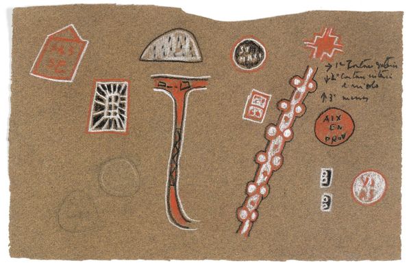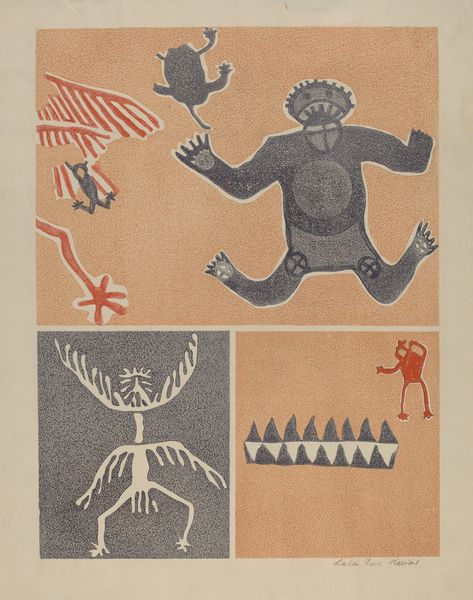 Lala Eve Rivol made this compelling print, Petroglyph - Human Figures, the date is unknown, using a simple but effective palette of ochre and blue-grey. I love the way the shapes are defined and activated by the negative space around them, like a conversation between figure and ground. The textures in this piece are fascinating. Rivol's mark-making feels intentional, each shape given definition and intention. Take, for example, the figure at the top left. It's like a human figure with antlers, standing above what could be a rake, maybe it is a symbolic ancestor? The granular texture suggests the printmaking technique used. It has a hand-made, slightly uneven quality that I find really appealing. Looking at this piece, I'm reminded of the art of Agnes Martin, who also worked with simple shapes and muted colors to create a sense of calm and contemplation. Ultimately, this print celebrates the ambiguity and multiple layers of interpretation that make art so engaging.