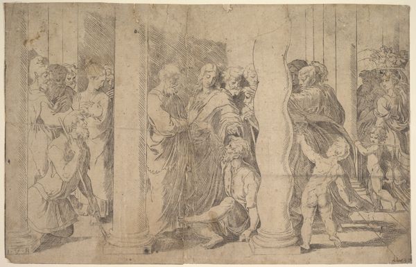 Parmigianino rendered "Saints Peter and John healing the Sick" in the 16th century using pen and brown ink, with a brown wash, on a sheet of paper. The earth-toned palette comes directly from the materials, the iron content in the ink reacting with the paper over centuries to produce the sepia effect. Parmigianino built up the composition through layers of hatching and cross-hatching, a labor-intensive approach that allowed him to model forms and suggest depth. Note the architecture, framing the healing of the sick. The columns are rendered with particular attention, their cylindrical forms enhanced by the artist’s skillful manipulation of light and shadow. In its time, a drawing like this would have been a functional object, a means of developing ideas for paintings or prints. But it also embodies the artist's virtuosity, his capacity to transform humble materials into a compelling vision. This kind of skill was itself a form of capital, of course, allowing Parmigianino to make his way in the world. Understanding the craft of this drawing allows us to fully appreciate his artistry.